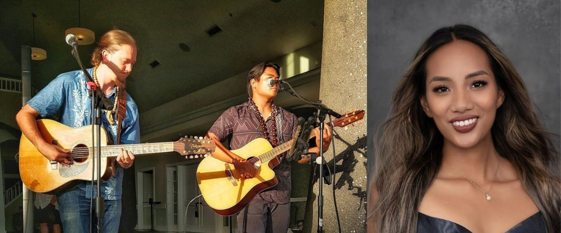 Mit ihm auf der Bühne stehen die Geschwister Ethan und Katie Villanueva, ebenfalls auf Maui geboren und aufgewachsen. Beide erlernten den Hula-Tanz.